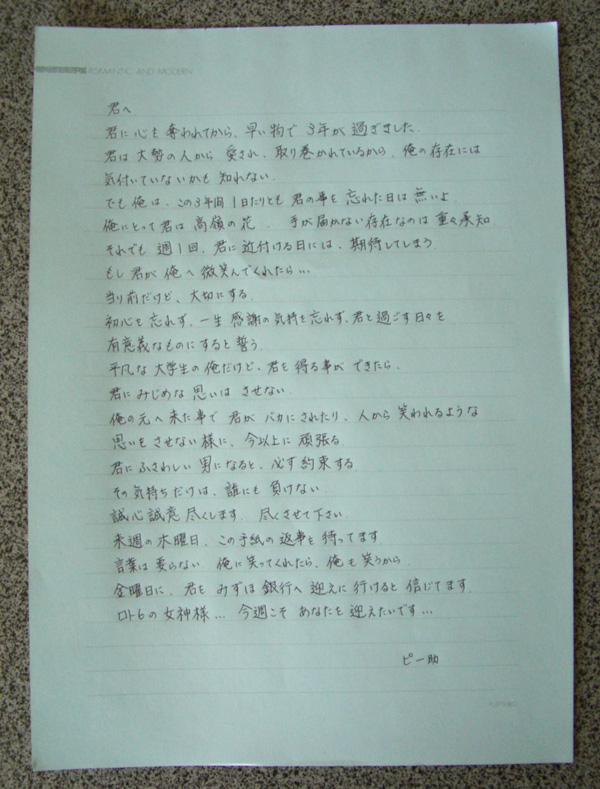 あとは~ 課題だった手紙で、ロト6の女神様に熱烈ラブレターを